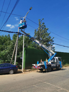 蓝牌路灯维修车施工现场